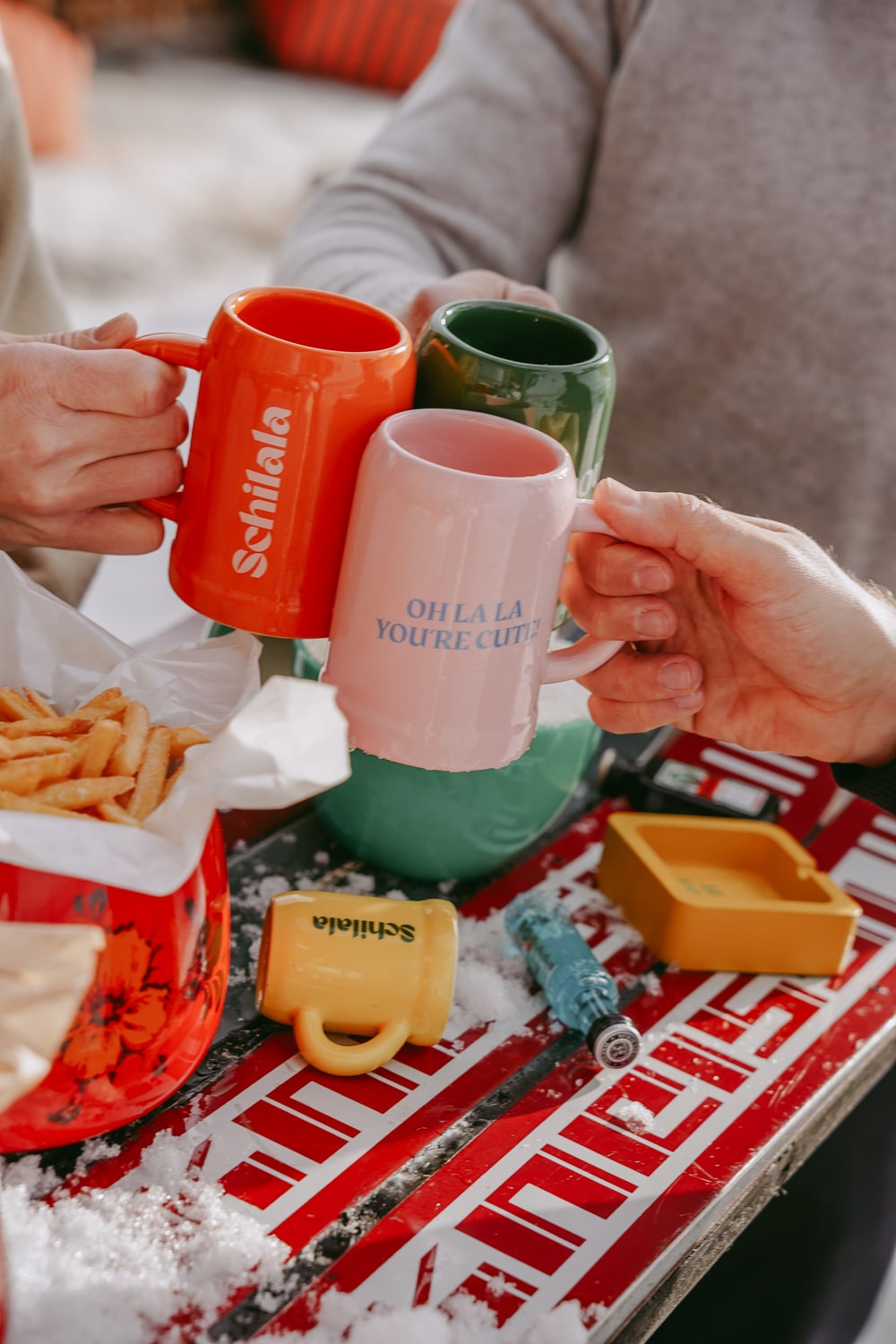 Pink "Ohlala you're cute", Grün "Pour me a drink", Orange "Out of office"